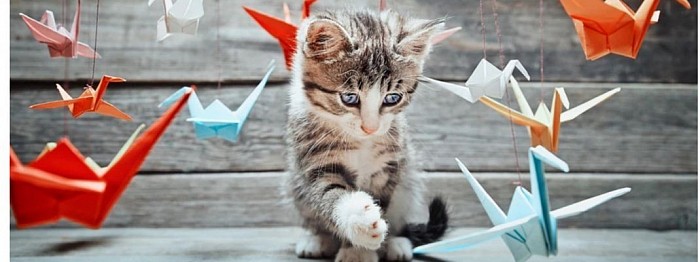 Origami: Falte aus Papier eine Kugel oder eine Box und versteck ein Leckerli darin. Das Papierkunstwerk wird nicht lange überleben, aber die Katze hat ihren Spaß.