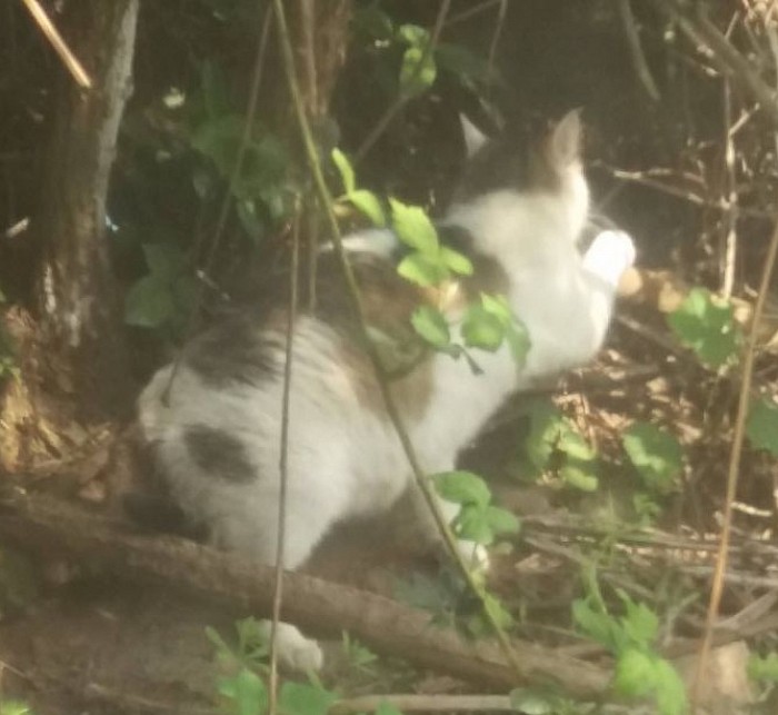 Seit Jahren hielt sie sich auf dem Wohnwagenplatz und in näherer Umgebung auf, ohne das sich jemand für die Arme verantwortlich fühlte. Wir vermuten das sie schon in jungen Jahren ausgesetzt wurde, da sie sehr scheu und ängstlich/misstrauisch Menschen gegenüber ist. Sie hat hier über Jahre hinweg ihren Lebensmittelpunkt gegründet und wohl auch in regelmäßigen Abständen ohne jegliche Hilfe ihren Nachwuchs bekommen und groß gezogen. Wir wollen nicht darüber nachdenken unter welchen Umständen sie wer weiß wie viele Kitten verloren hat. Im September 2021 zeigten sich hinter unserem Wohnwagen 8 Kitten, da diese sehr scheu waren sind sie gleich wieder abgehauen und trotz mehrfacher Suche hat es 2 Wochen gedauert bis wir endlich 4 Stück mit Mami und dem Papa wieder gesehen haben. Sie waren alle in einem schlechten Zustand. Die anderen 4 haben es wohl leider nicht geschafft. Ab da haben wir beschlossen uns um Mami ,ihre Kitten (Mikey, Tyga, Kitty und Whitey) und den Papa zu kümmern und ihr all die Hilfe zu geben, die sie braucht bzw. annimmt. Ab jetzt ist sie nicht mehr auf sich alleine gestellt.