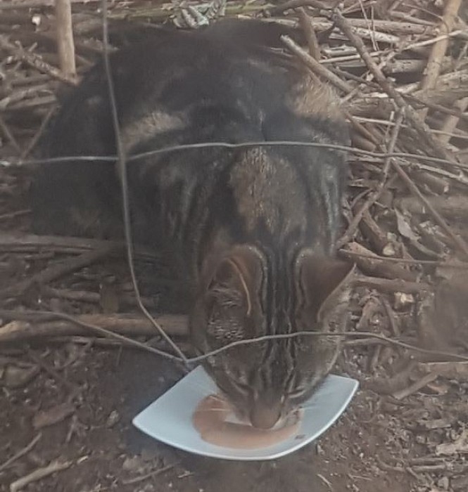 Kitty, die neugieriste aller 4 Überlebenden Kitten hat immer sofort alles erkundet,was wir unseren Streunern unterm bzw. hinterm Wohnwagen angeboten haben. Leider ist Sie seit Januar 2022 verschwunden. Wir hoffen, dass Sie in der Nähe des Wohnwagenplatzes ein Zuhause gefunden hat. Gregor sieht immer wieder eine Jungkatze an einem Mehrfamilienhaus die ihr verdächtig ähnlich sieht. Sollte jemand genaueres darüber wissen würden wir darum bitten uns zu informieren, dass wir uns keine Sorgen mehr machen müssen.